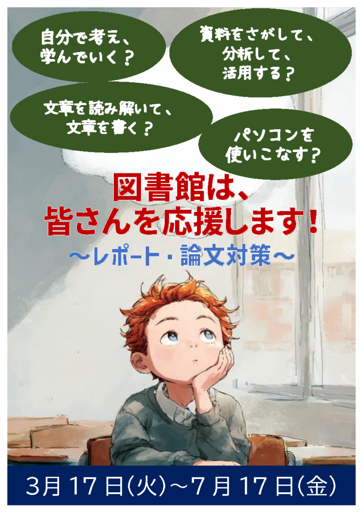 - 【企画展示】「図書館は皆さんを応援します!~レポート・論文対策~」スタート!!