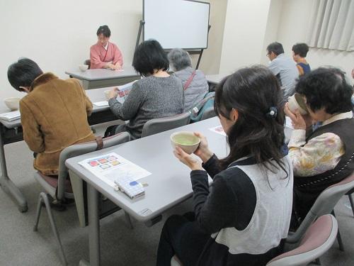 講座終了間際に、裏方でがんばっていた茶道部4名が登場すると、