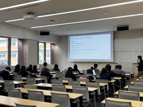 文学部 日本文学科 竹永 知弘 先生による「宇佐見りん『推し、燃ゆ』からみる日本現代文学」模擬授業の様子