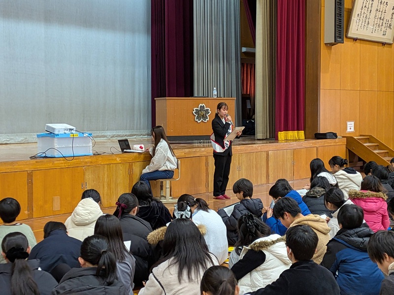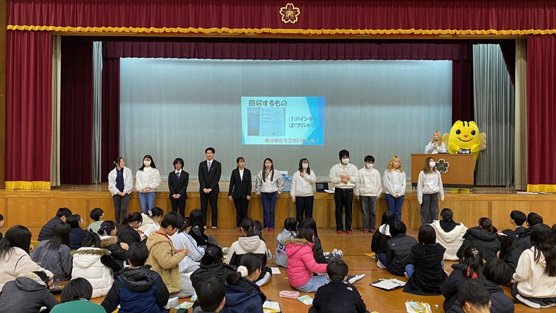 授業では、学生が選挙の仕組みや投票までの流れについて、クイズ形式で楽しみながら分かりやすく解説しました。さらに、学生自らが市長立候補者役となり、本番さながらの演説を実施。児童は演説を聞いたうえで、自分で考えて模擬投票を体験しました。